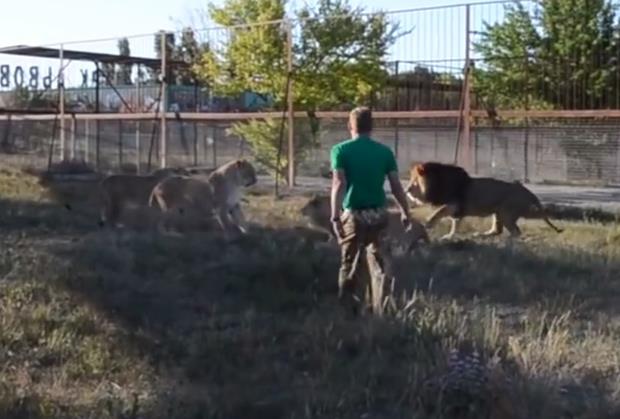 U slučaju Olega Zubkova, osnivača i direktora safari parka Tajgan na Krimu, u kojem lavlja menažerija slobodno šeta, metoda je identična. Napetu situaciju, u kojoj se nekoliko ženki okomilo na najsitniju među njima, Oleg je pošao da reši povišenim tonom. Međutim, tada je pritrčao poveći mužjak, a "gospodar zveri" je posegao za proverenim oružjem - papučom. Kako ju je hitnuo, tako su se lavovi razbežali i smirili.