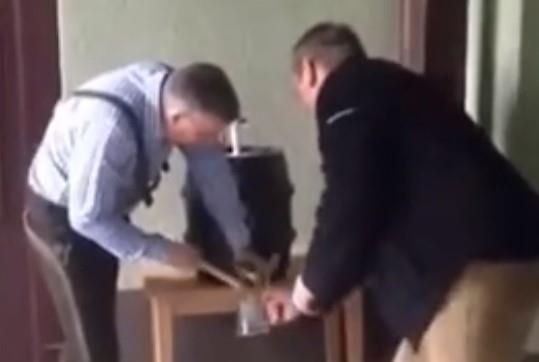Pošto njihovo omiljeno piće nikako nije htelo da potekne na slavinu, jedan od njih se dosetio da čekićem pokrene mehanizam.