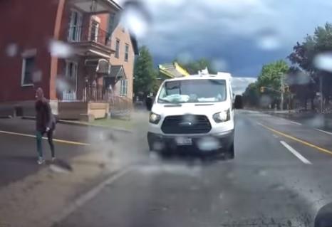 Vozač je snimljen kako namerno prelazi preko velikih bara posle kiše duž trotoara glavnih ulica Otave gde je prskao pešake.