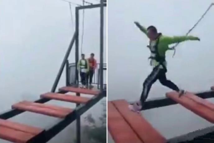 Ako ikada budete putovali u Kinu, evo zabave koju vam nikako ne preporučujemo da upražnjavate. To je preskakanje improvizovanog mostića kojem fali poneka daska, a sve to iznad provalije.