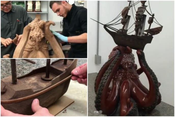 Caka je u tome što je on poslastičar i što su sva njegova dela napravljena od - čokolade. Kako Amori to radi prikazao je kroz proces pravljenja skulpture ogromne hobotnice koja se poigrava sa brodom.