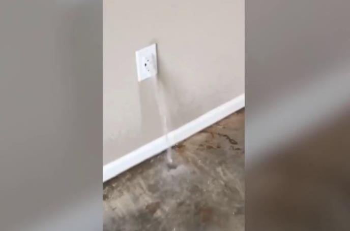 Na klipu, koji je snimljen u poplavljenoj kući, vidi se kako voda curi iz - utičnice na zidu. Kao da je neko odvrnuo slavinu i mlaz je najnormalnije potekao iz nje.