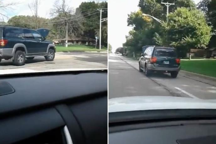 Snimak bahatog američkog vozača džipa koji je udario u automobil ispred sebe, a zatim počeo da beži, objavljen je na internetu zahvaljujući oštećenom vozaču. On je nastavio da prati begunca koji je nastavio da vozi sa podignutom haubom koja mu je potpuno zaklanjala vidik.
