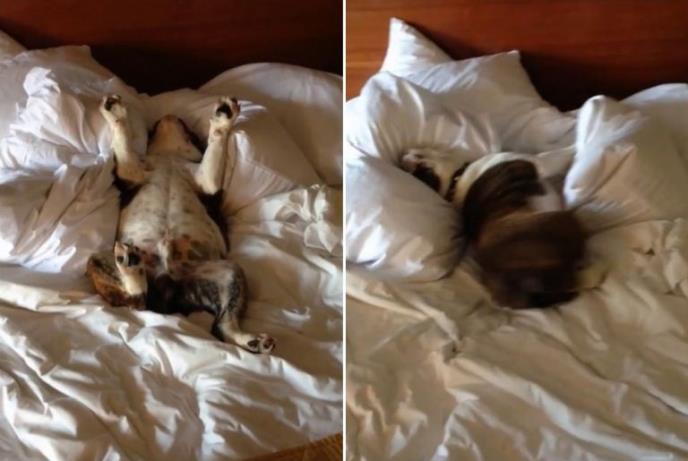 U ovom slučaju on je čak sve četiri šape digao u vis i tako zadremao da isprva nije reagovao čak ni na glasno dozivanje svojih vlasnika.