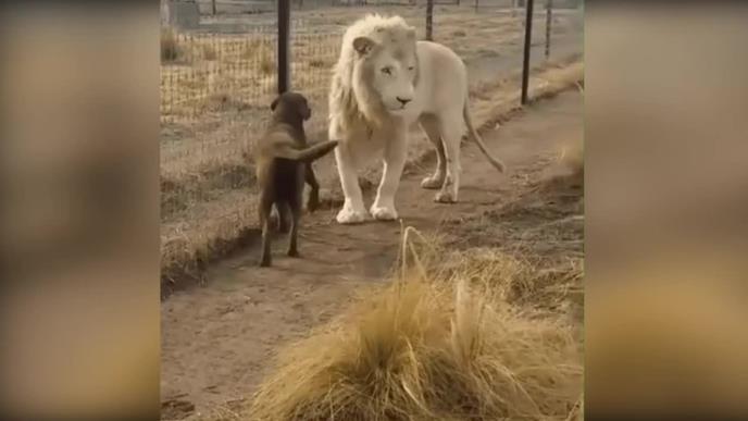 Donosimo vam neviđen trenutak susreta ogromnog lava i jednog psa.
