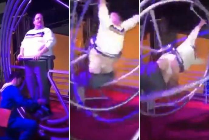 Rekli su mu da će biti zabavno, ali mu nisu rekli da će on biti predmet podsmeha. Tako bi, u najkraćem, mogao da se opiše slučaj debeljka kojeg su ubedili da uđe u ogromni žiroskop i okuša se u prevrtanjima i tumbanjima.