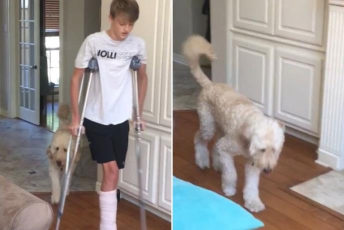 Takav slučaj se desio dečaku koji je slomio nogu i "zaradio" gips na nozi. Njegov ljubimac video je kako gazda hoda uz pomoć štaka, pa je preslikao njegovo ponašanje i počeo i sam da ćopa.