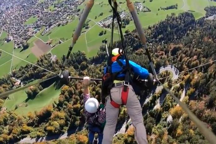 Prvi let zmajem Amerikanca Krisa Gurskija mogao je ujedno da bude i poslednji. Naime, on je sa instruktorom poleteo iznad švajcarskih planina, a da ga ovaj nije pre toga vezao sigurnosnim pojasevima za letelicu.