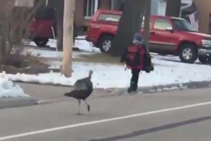 Da nemaju samo psi čuvari "pik" na prolaznike, iskusio je američki mališa kada se vraćao iz škole. Na njega se, sasvim neočekivano, okomila jedna ćurka i nikako nije htela da ga ostavi na miru.