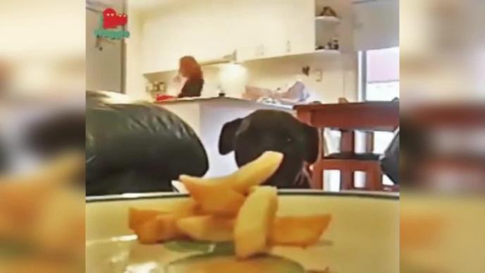 Tako je snimljen i ovaj pas koji koristi trenutak nepažnje svoje gazdarice da ukrade jedan pomfrit.