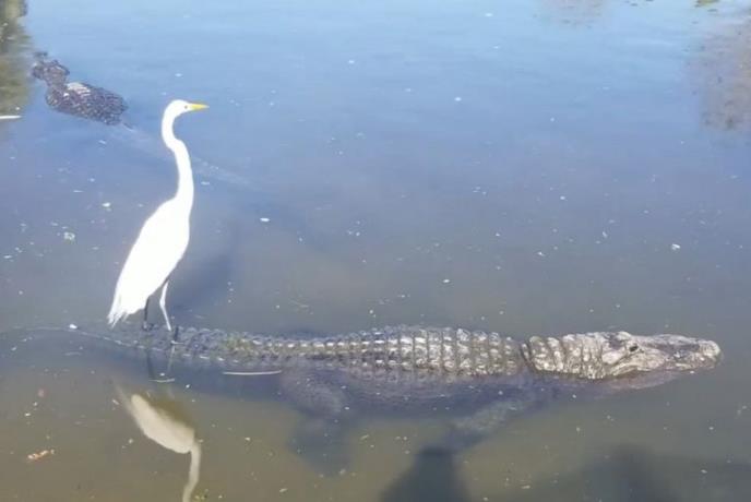 Ne, nije u pitanju neka još opasnija životinja. Radi se o velikoj beloj čaplji koja u Gatorlendu na Floridi koristi aligatore kao prevozno sredstvo.