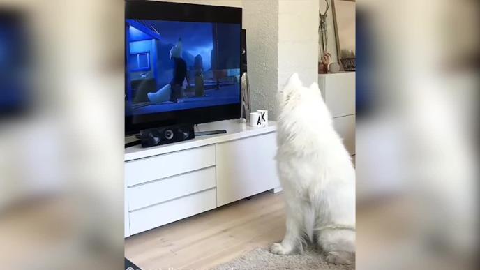Voli da gleda crtane filmove, ali i da oponaša svoje omiljene junake. Prostrana dnevna soba, televizor, crtać na njemu i sreći ovog psa nema kraja.
