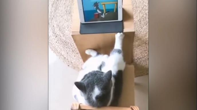 OVAJ MAČAK JE KRALJ HEDONIZMA! Zavalio se u stolicu, ispružio nogu na sto i uživa u omiljenom crtaću! (VIDEO)