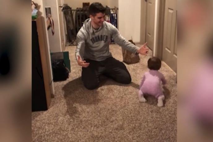 E, baš to se desilo ovom tati koji je došao kući i video bebicu koja ide ka njemu raširenih ruku. Spustio se na kolena, raširio ruke i čekao da ga ćerka zagrli. Međutim, ona ga je zaobišla i nastavila ka kesi sa brzom hranom koju je tata spustio iza leđa.