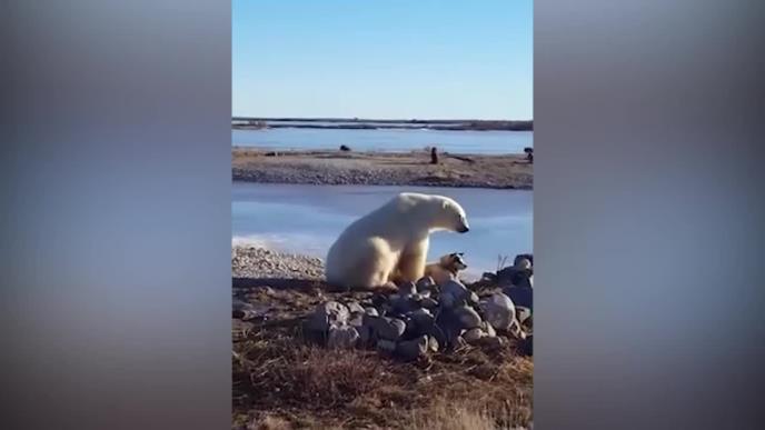 PRESLATKO! Beli polarni meda mazi psa prvo jednom, a onda drugom šapom (VIDEO)