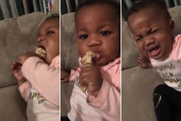 Iako ga je oglodala gotovo do samog kraja, ona nije htela da ga da majci, već su počele da se otimaju oko krilca. Bebica nikako nije htela da popusti, pa se strašno naljutila kad joj ga je mama uzela.