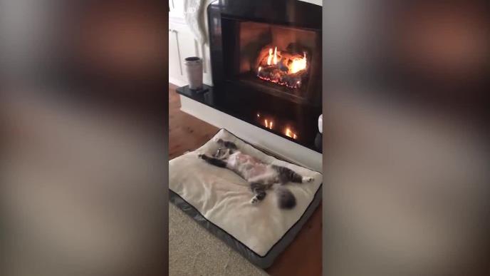 MAČKA „KULIRA“ PORED KAMINA! Zvuči kao vic, ali je istina. Ako nam ne verujete, izvolite pogledajte (VIDEO)