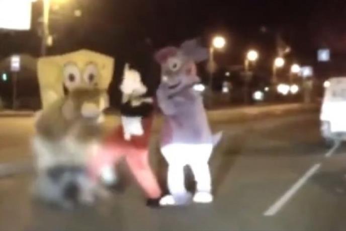 Da nije snimljena, pomislili biste da je nadrealna scena koja se dogodila u Rusiji samo plod bujne mašte nekog očevica koji se "naroljao" votke. Pošto situacija, u kojoj Miki Maus, Sunđer Bob, Skrat i još jedan junak iz crtanih filmova biju čoveka na drumu, zvuči sve samo ne normalna.