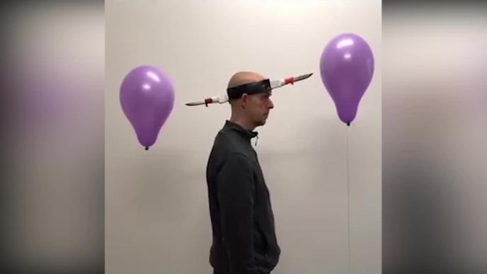 STAVIO NOŽEVE NA GLAVU I BUŠIO BALONE! A ONDA JE OTIŠAO KORAK DALJE: Smislio je još nešto luđe i sve snimio! (VIDEO)