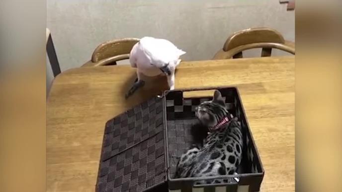 KAKAV NEOČEKIVANI POTEZ! Maca je udarila papagaja šapicom, a onda je on uradio nešto suludo! (VIDEO)