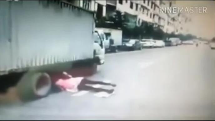 TO SE ZOVE LUDA SREĆA! Žena podletela pod kamion, a točak joj došao na centimetar od glave! ŠOK! (VIDEO)