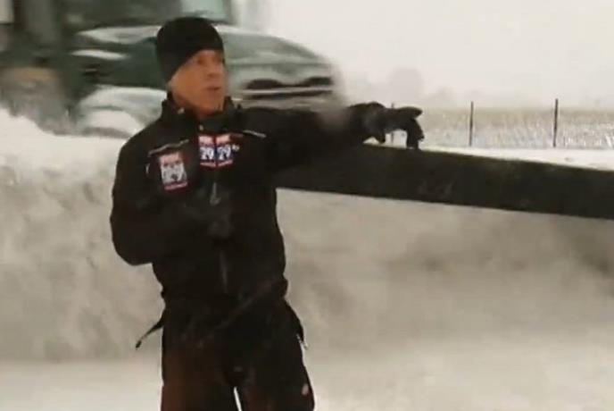 Reporter Stiv Kili javio sa snežnih puteva Filadelfije, gde je želeo da pokaže koliko je snega palo i kako rade putarske službe. Da bi gledaocima što bolje preneo situaciju sa terena on je stao tik pored kolovoza koje su krčili kamioni za čišćenje snega.