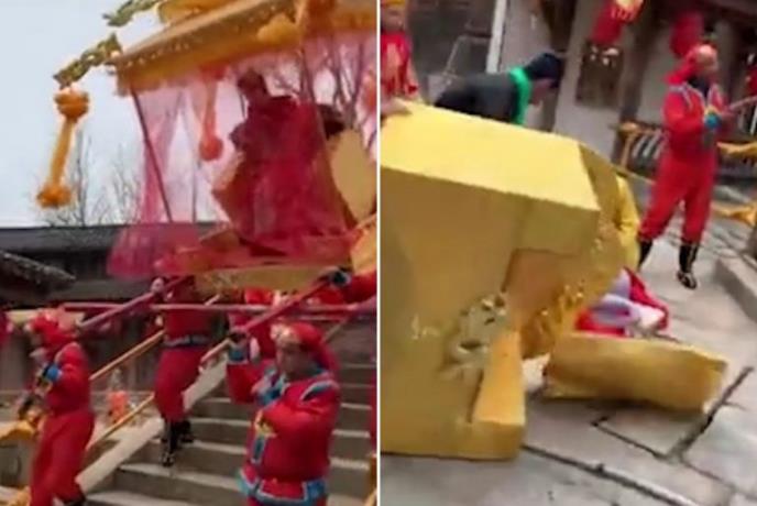 Ceremonija koja je održana u jednom kineskom gradu podrazumevala je da nosači spuste niz stepenice kraljicu koja se nalazi na improvizovanom tronu. No, ekipa koja je trebalo to da izvede nije bila uvežbana, pa se glumica koja je igrala imperatorku počela previš da se naginje ka napred.