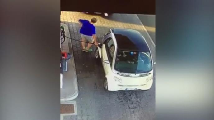 KAKAV POMAHNITALI VOZAČ! Dok je čovek točio gorivo na pumpi, on se zakucao u njega strahovitom brzinom! (VIDEO)