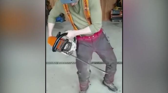 OVAJ ČOVEK SE KOCKA SA ŽIVOTOM: Samog sebe seče motornom testerom! Jeste da nosi zaštitne pantalone, ali to mu nije nikakva garancija! (VIDEO)