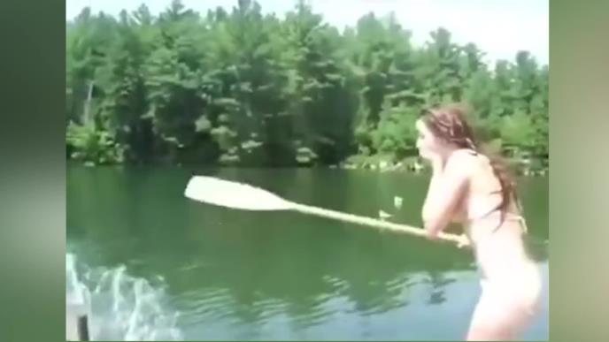 Ovaj momak je od svoje devojke dobio veslo po glavi.