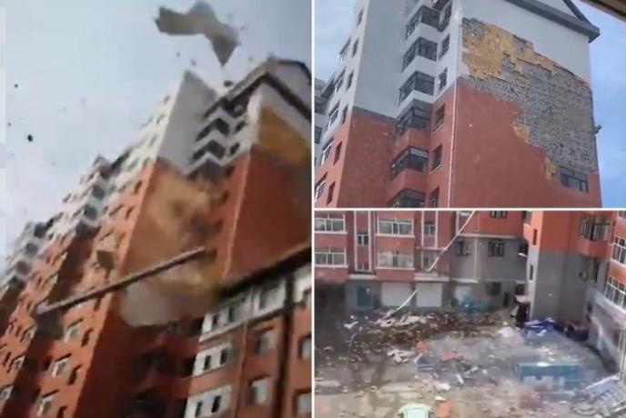 Jaka oluja, koja je nedavno pogodila grad Hefej na krajnjem severoistoku Kine, napravila je totalni dar-mar po pojedinim naseljima. Na snimku koji su objavili stanari jedne visokospratnice vidi se kako ljudi beže dok vetar kida velike komade fasade.