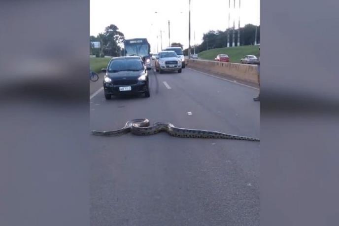 Saobraćaj na prometnom autoputu u blizini brazilskog grada Porto Veljo bio je blokiran na nekoliko minuta jer je ogromna anakonda rešila da baš tu pređe na drugu stranu.