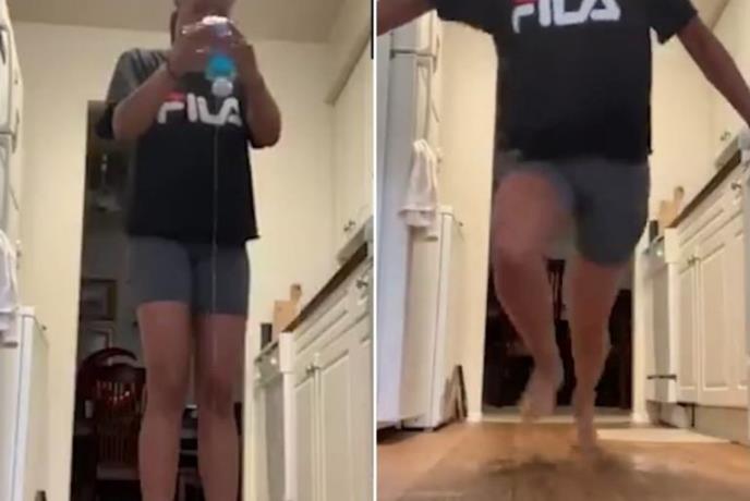 Kako to izgleda demonstrirala nam je devojka koja je sipala malo vode i iscedila sapun na pod. Potom se uhvatila rukama za šporet i kuhinjski element i krenula da vergla nogama kao da je na traci.