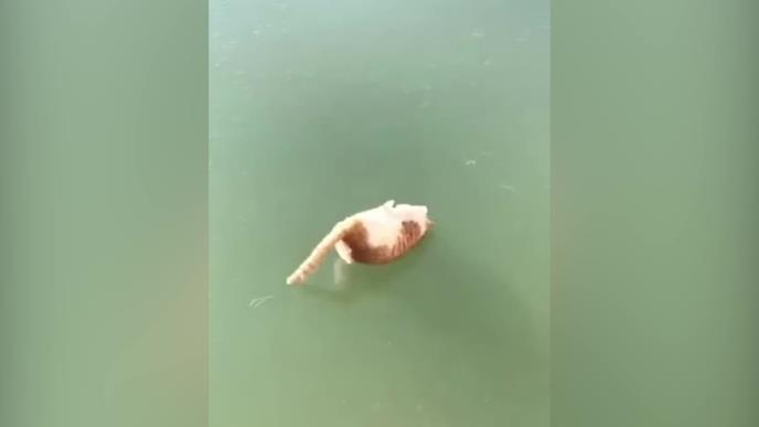 A onda na scenu stupa mačor koji uporno pokušava da prezalogaji ribu, koju inače mačke obožavaju. I nikako mu ne polazi za rukom, ali ni njema da odustane.