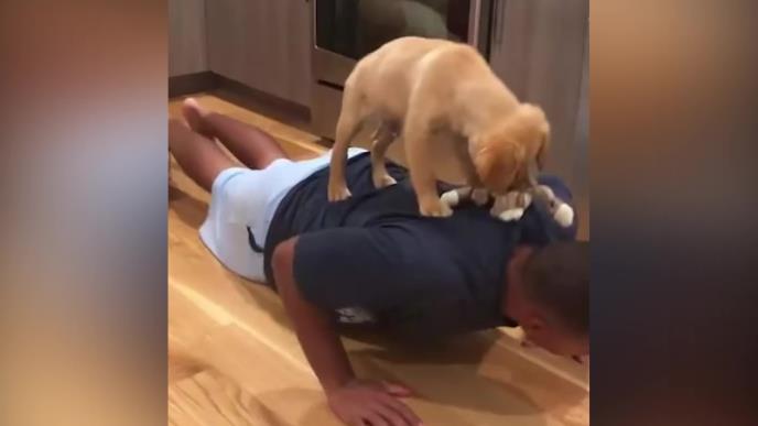 POTPUNO PRESLATKO! On radi sklekove dok mu pas sa igračkicom skakuće po leđima! (VIDEO)