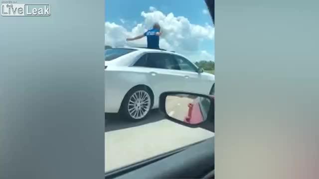 Sedamdesetogodišnji Leonard Olsen iz Lejklenda u američkoj državi Florida uhapšen je nakon što su ga policijaci zatekli kako juri lokalnim autoputem stojeći raširenih ruku proturen kroz šiber automobila.