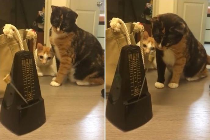 Čudna sprava taj metronom. Stalno se mrda levo-desno, a još i preteće otkucava. Tako je to izgledalo iz ugla dve mace koje su prvi put videle tu muzičku napravu.