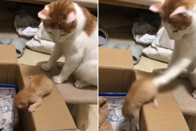 NISU SVE MAME NEŽNE! Kada mačka pomaže mačetu, onda to baš zaboli! (VIDEO)