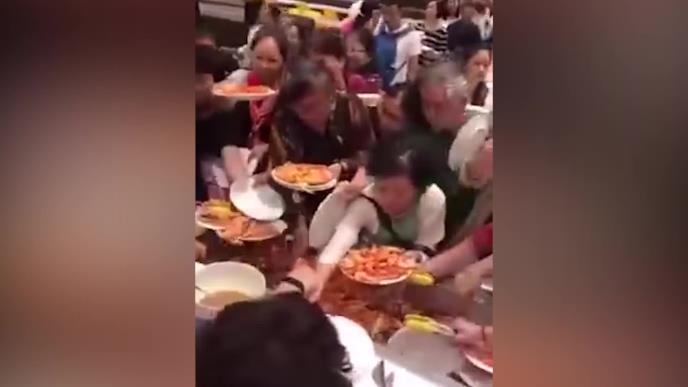 KAKVA OTIMAČINA OKO HRANE! Sa obe ruke gramzivo pune po dva tanjira! NIJE U SRBIJI, a pogledajte gde je! (VIDEO)
