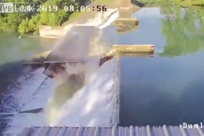 Taj trenutak je i zabeležen na snimku, gde se vidi kako beton popušta pred velikom vodom, a potom bujica nekontrolisano prodire kroz novonastali otvor.