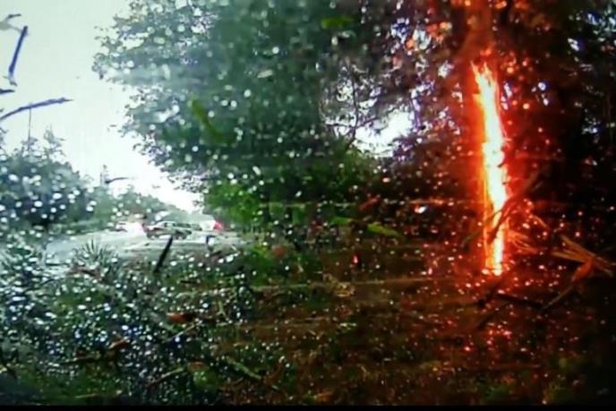 Jedan od vozača, iz čijeg je automobila ovaj snimak, desilo se da je grom oborio drvo tačno ispred vozila. Iako je naleteo na stablo, ispostavilo se da su on i saputnici imali veliku sreću. Kad su se vratili samo malo unazad, videli su da je deo stabla, koji je ostao u zemlji, bukti pokraj puta.