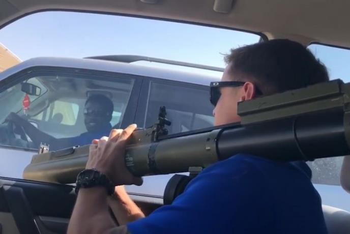 Baš takva situacija prikazana je na ovom snimku gde je vozač pokazao srednji prst putnicima do sebe, na šta su oni odgovorili potezanjem - protivtenkovskog raketnog bacača.