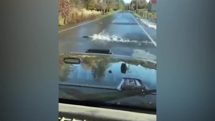 Zbog jakih kiša u većem delu Evrope su poplave. Tako je u jednom selu reka preplavila lokalni put. I zato vozači treba da obraćaju pažnju ne na pešake, koji prelaze put, nego ni manje ni više nego na ribe! Pogledajte kako to sve izgleda!
