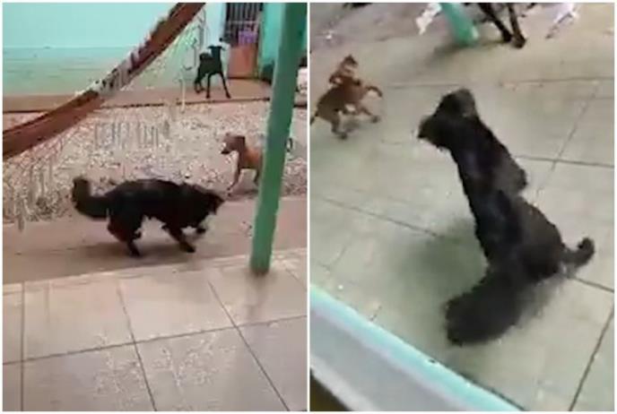 Onda su njeni ljubimci počeli da se iživljavaju nad lovinom i da je bacaju tamo-vamo, pa je jedan od pasa tako zavitlao da je mrtvi glodar pogodio tačno u telefon. Devojka je istog momenta bacila mobilni i vrišteći utekla što dalje.