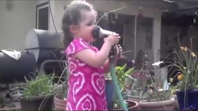 Ova devojčica je spas od ekstremne vrućine želela da pronađe u baštenskom crevu.