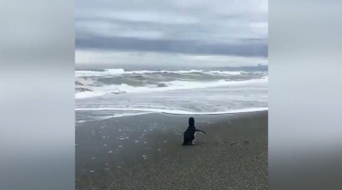Ovo je mladunče malog plavog pingvina koje se prvi put otisnulo u vode okeana.
