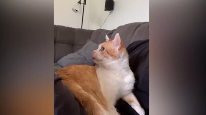 KOLIKO JE SAMO PRESLATKA! Kad je videla na televiziji akvarijum sa ribicama, maca isplazila jezik i nikud se ne pomera! (VIDEO)
