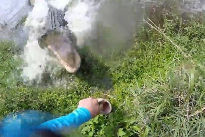 Čini se da bi aligator zgrabio ribolovac samo da je bio pola metra bliže.