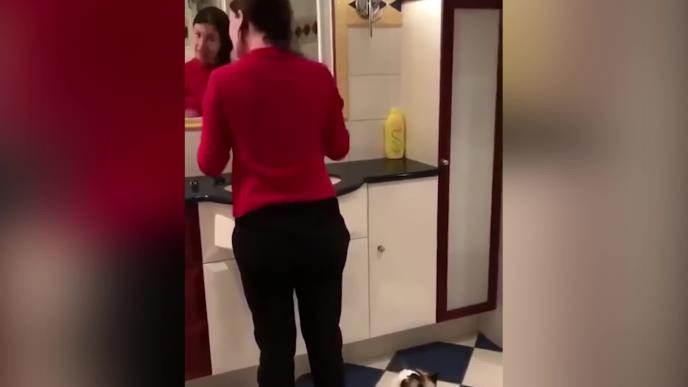 Bez obzira na njenu težinu ona skače kao od šale i to sa poda na gazdaričina leđa.