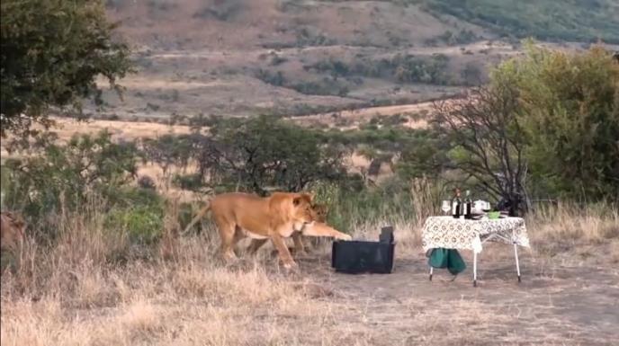 Ipak možemo samo da pretpostavimo kako su se osećali kada se lavica sa mladuncima uputila ka njihovom stolu koji su postavili kako bi ručali u prirodi.